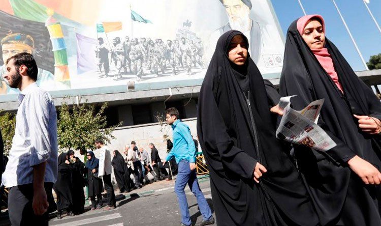 وبموجب الشريعة الإسلامية، التي فُرضت بعد ثورة 1979 ويتم إلزام النساء بتغطية شعرهن وارتداء ملابس طويلة وفضفاضة. ويواجه المخالفون عقوبة التوبيخ العلني أو دفع غرامة أو الاعتقال. لكن بعد مضي عقود على الثورة، لا يزال الحكام من رجال الدين يبذلون جهوداً مضنية لتطبيق القانون، إذ ترتدي كثيرات من جميع الأعمار والخلفيات الثقافية معاطف ضيقة وأوشحة ذات ألوان زاهية يتم دفعها للخلف، لتكشف جزءً كبيراً من الشعر.