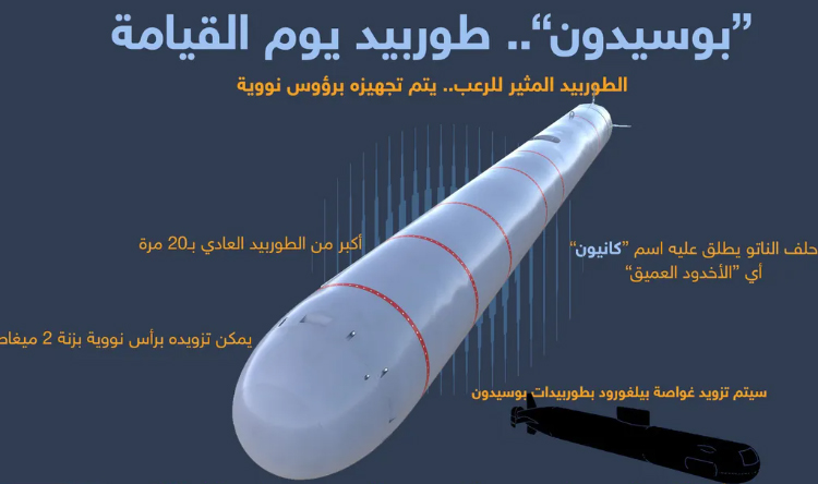 وأعلن الرئيس الروسي فلاديمير بوتين لأول مرة، عما سيُعرف باسم “طوربيد بوسيدون” في عام 2018، قائلا إنه “نوع جديد تماما من الأسلحة النووية الاستراتيجية، مزود بمصدر طاقة نووية خاص بها”.