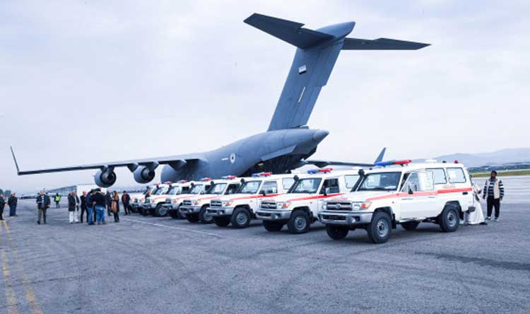 أهدت قيادة العمليات المشتركة ضمن عملية “الفارس الشهم 2” بالتنسيق مع وزارة الصحة والهلال الأحمر الإماراتي، 10 سيارات إسعاف مجهزة بأحدث الأجهزة التقنية الحديثة لسوريا.