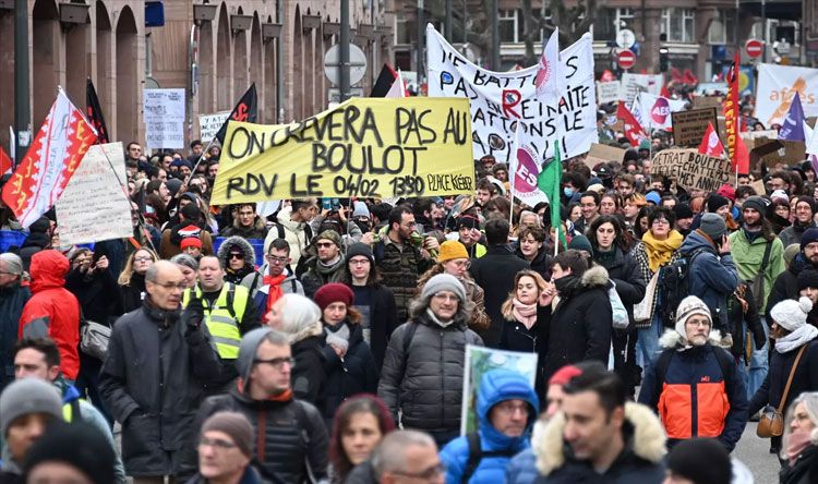 يذكر أنه منذ 19 كانون الثاني، تظاهر ملايين الفرنسيين للتعبير عن رفضهم لهذا الإصلاح، إلا أن موقف الحكومة لم يتزحزح إذ اتبعت استراتيجية للتوصل إلى إقرار المشروع بوتيرة سريعة مستخدمة تدابير واردة في الدستور.