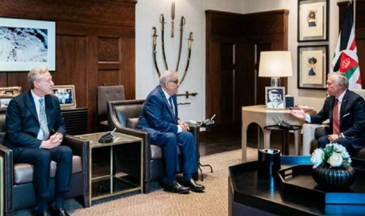 التقى العاهل الأردني الملك عبدالله الثاني، في قصر الحسينية، اليوم الأربعاء، وزير الخارجية والمغتربين في حكومة تصريف الأعمال عبدالله بو حبيب، بحضور نائب رئيس الوزراء وزير الخارجية وشؤون المغتربين أيمن الصفدي، ومدير مكتب الملك عبدالله جعفر حسان.