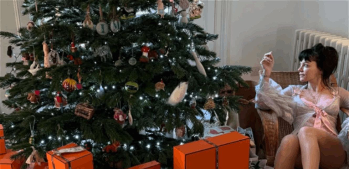 وفي صور نشرتها عبر "إنستغرام"، ظهرت ليلي ألين بجانب شجرة عيد الميلاد بملابس داخلية من الدانتيل المزخرف وحذاء بكعب عالٍ وردي، فيما بدت "صناديق هيرميس" البرتقالية الشهيرة مكدّسة في الأسفل، في إشارة إلى هدايا ضخمة قد تجعل بناتها "موضع حسد" بين أصدقائهن. (metro)
