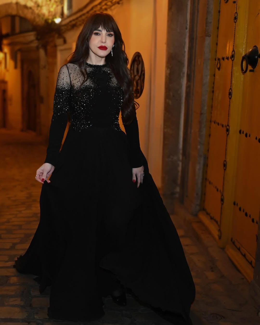 شاركت عبير نعمة جمهورها أجواء حفلتها في تونس بمجموعة صور التُقطت في أحيائها القديمة، حيث تألّقت بفستان أسود أنيق حمل توقيع المصمم اللبناني جورج حبيقة، قبل أن تترجمه حضوراً لافتاً على المسرح.