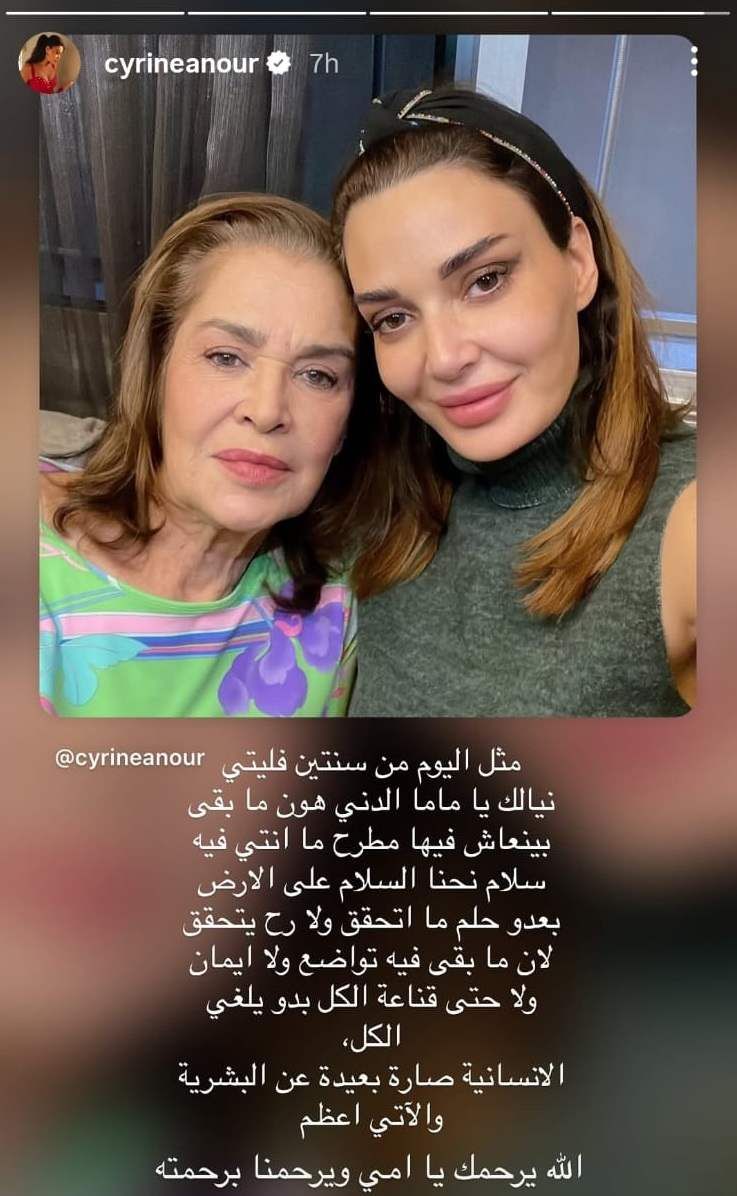 السابق سيرين عبد النور تستذكر والدتها الراحلة: "نيالك يا ماما الدني هون ما بقى بينعاش فيها"