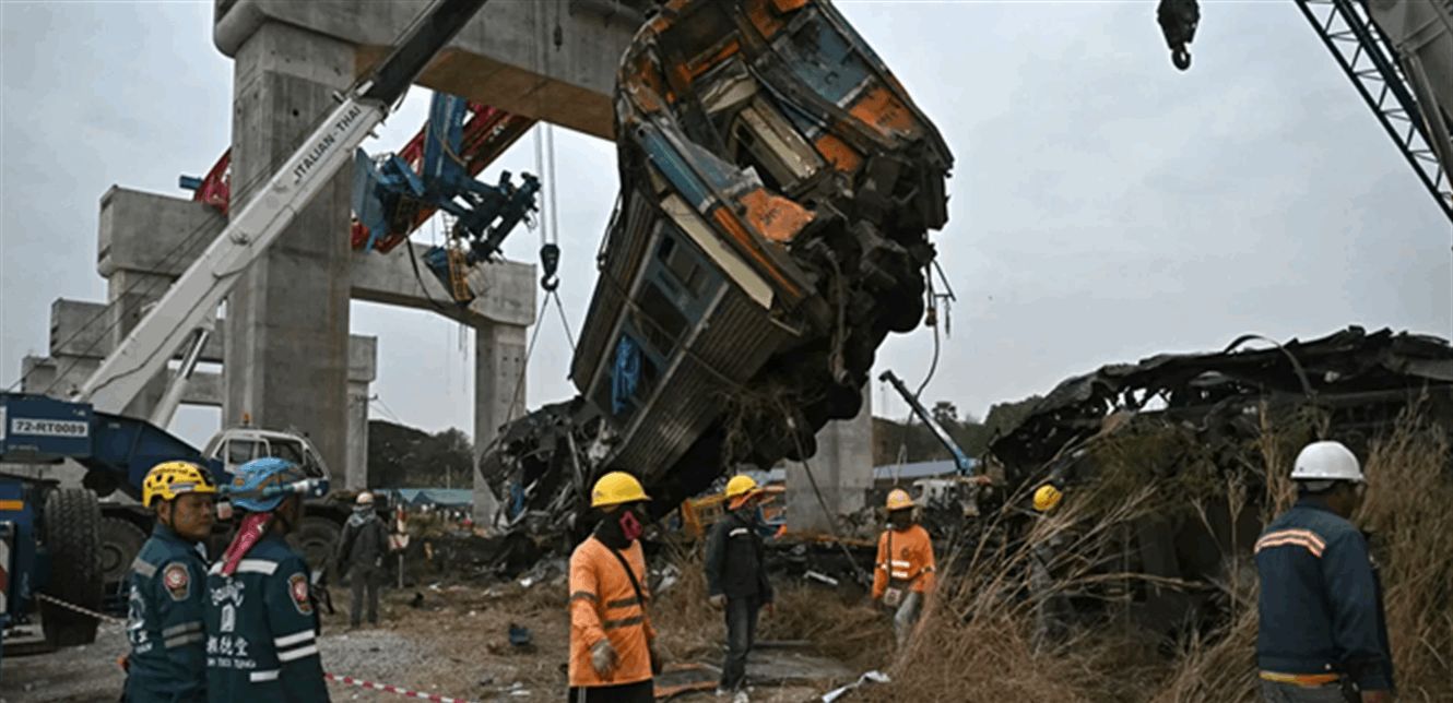 قالت وزارة الصحة التايلاندية إن قطارا خرج عن القضبان في شمال شرق البلاد، الأربعاء، بعد سقوط رافعة بناء على اثنتين من عرباته، مما أسفر عن مقتل 31 شخصا على الأقل وإصابة 64 آخرين.