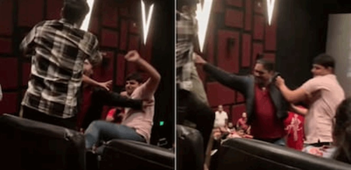 وتزامن الجدل مع انتشار مقطع فيديو مدته 24 ثانية، يُظهر ثلاثة رجال يتبادلون الدفع واللكم والركل داخل دار السينما، بينما حاول شخص رابع يرتدي قميصاً أسود وأبيض التدخل لفض الاشتباك.