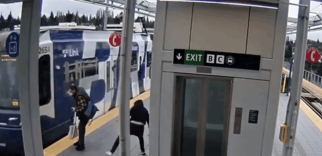 وثّقت كاميرات المراقبة حادثة مروعة في محطة "نورثجيت" للقطار الخفيف في سياتل، بعدما أظهر فيديو رجلاً وهو يدفع أحد الركاب باتجاه القطار أثناء دخوله المحطة، ما أثار ذعراً واسعاً بين الموجودين.