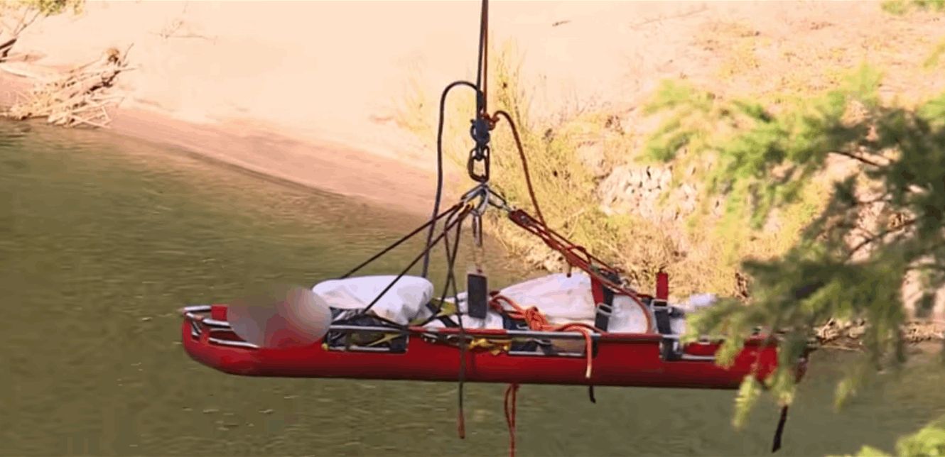 وبالاستناد إلى وصفه للموقع وإشارة هاتفه المحمول، تمكن رجال الإنقاذ من تحديد مكانه، ثم اقتربوا منه بواسطة قارب، قبل أن يقرروا استخدام نظام حبال عالي الزاوية لنقله.
