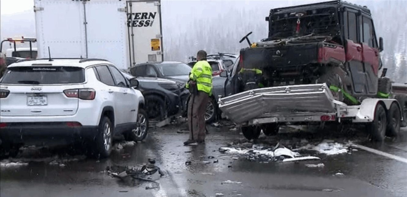 ووقع الحادث على المسارب الشرقية قرب منطقة "لوفلاند سكي أريا"، حيث تسببت الثلوج الكثيفة والرياح القوية بانعدام شبه كامل للرؤية، فيما غطى الجليد والثلج الطريق، ما أدى إلى سلسلة اصطدامات متلاحقة.