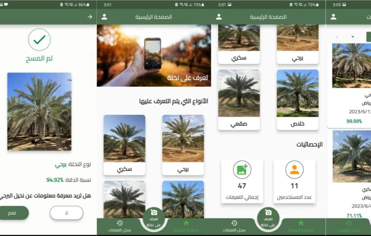 وعلاوة على ذلك؛ طور الباحثون أيضًا تطبيق أندرويد يستخدم نظام (DPXception) الذكي لتصنيف أنواع النخيل من الصور التي تلتقطها كاميرا الهاتف الذكي لحظيًا.