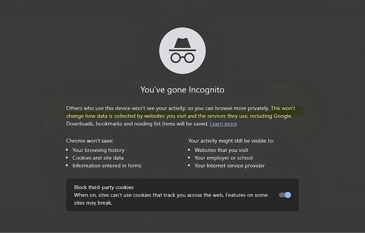 وتجدر الملاحظة أن الوضع المخفي ليس وضعًا مجهولاً، ويمكن لمواقع الويب التي تزورها، ومنها جوجل، جمع البيانات وتتبعك.