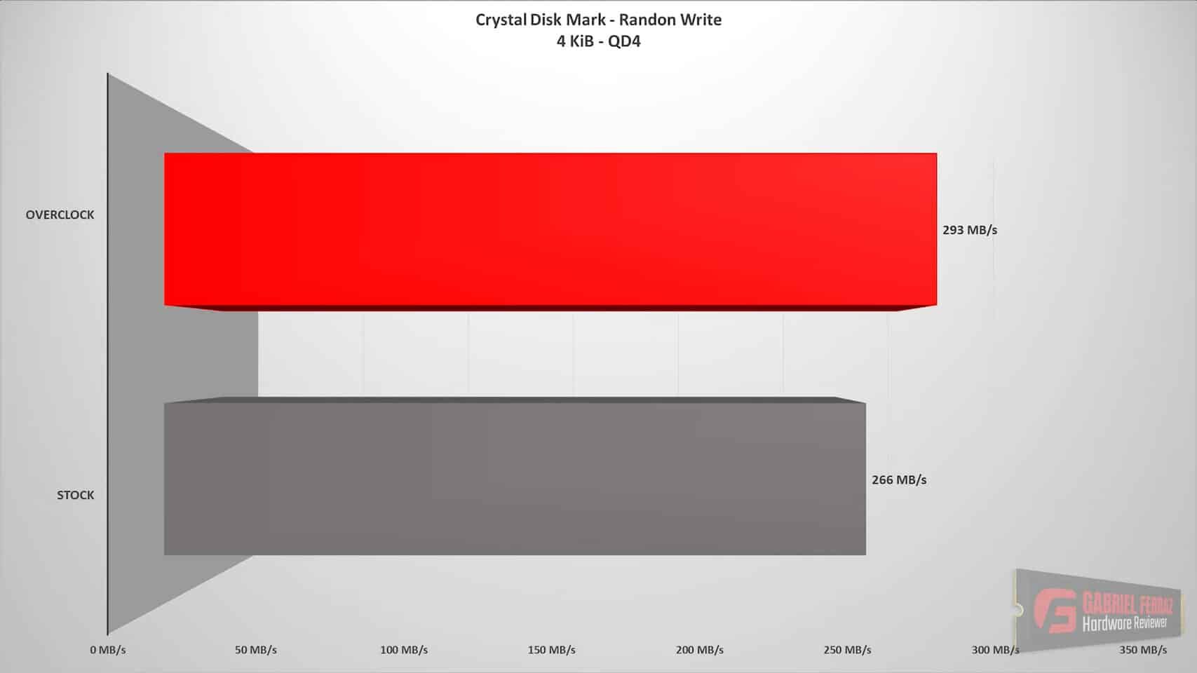 أما فيما يتعلق بالأداء، فقد انخفض معدل الخمول في كل من عمليات القراءة والكتابة، وطرأ تحسن طفيف في سرعة القراءة، في حين شهدت سرعة الكتابة تحسنًا كبيرًا، كما زاد عرض النطاق الترددي للذاكرة. لكن المشكلة الكبرى كانت في درجات الحرارة التي ارتفعت من 40 درجة مئوية إلى 45 درجة مئوية. ويعد استمرار ارتفاع درجات الحرارة بهذا الشكل مع أقراص SSD عاملًا أساسيًا في انخفاض العمر الافتراضي للقرص.