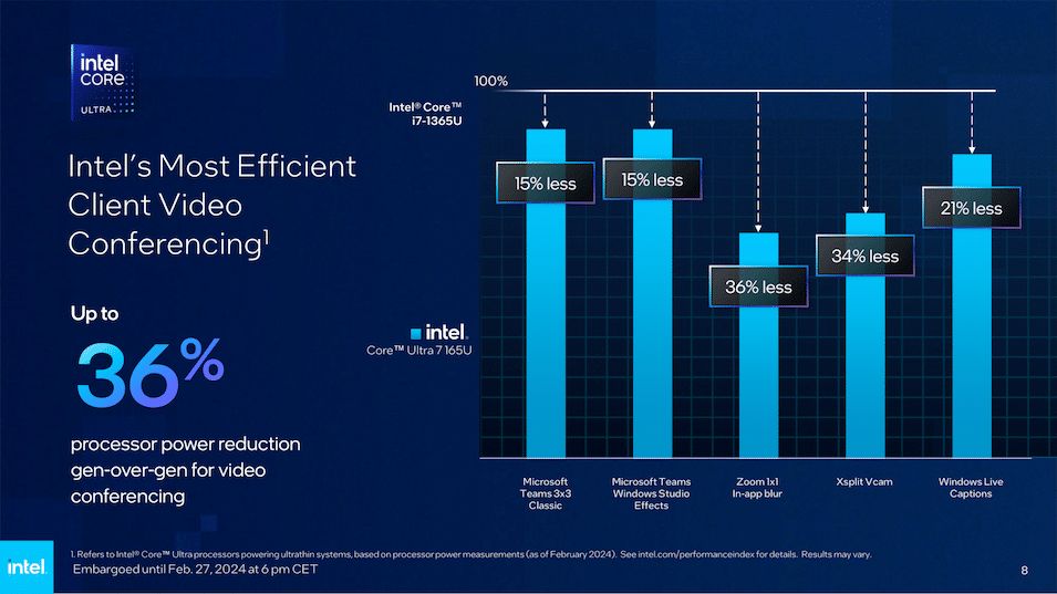 كما أن الترقية الأخيرة لمعالجات Core Ultra، التي ظهرت أول مرة في شهر ديسمبر من عام 2023، مهمة إذ أصبحت تتمتع بهندسة محسنة للذكاء الاصطناعي مع وحدة المعالجة العصبية الجديدة (NPU) لتسريع مهام معينة.