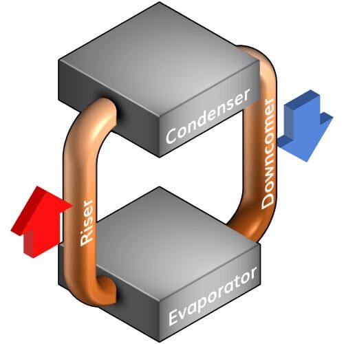 واللافت أن الأنبوبين متصلان بكل جهة من جهات الراديتر، بدلًا من الاتصال به من جهة واحدة، ويؤكد هذا التصميم حاجته إلى الاستفادة الكاملة من الفرق الحراري للراديتر كليًا وذلك لإبقاء سائل التبريد متدفقًا عبره، بدلًا من الاعتماد على مضخة تضخ سائل التبريد حول الراديتر وتخرجه من الجانب نفسه.
