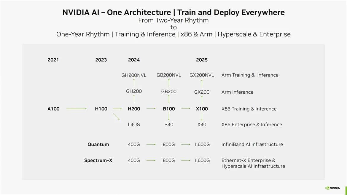 وهذا أمر مثير للاهتمام نظرًا إلى أن شركة إنفيديا لم تكشف فعليًا عن منتجات تسمى B200 حتى الآن. وفي الوقت نفسه، ذكرت إنفيديا وحدة معالجة الرسوم B100 في خريطة الطريق الأخيرة التي ستكون خليفة لوحدة معالجة الرسوم H200 المستخدمة في التدريب والاستدلال.