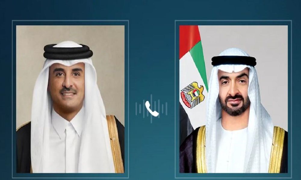 بحث الشيخ محمد بن زايد آل نهيان رئيس دولة الإمارات العربية المتحدة مع الشيخ تميم بن حمد آل ثاني أمير دولة قطر، خلال اتصال هاتفي، العلاقات الأخوية وسبل تعزيز التعاون والعمل المشترك وتنميتهما في مختلف المجالات بما يحقق المصالح المتبادلة للبلدين وشعبيهما.