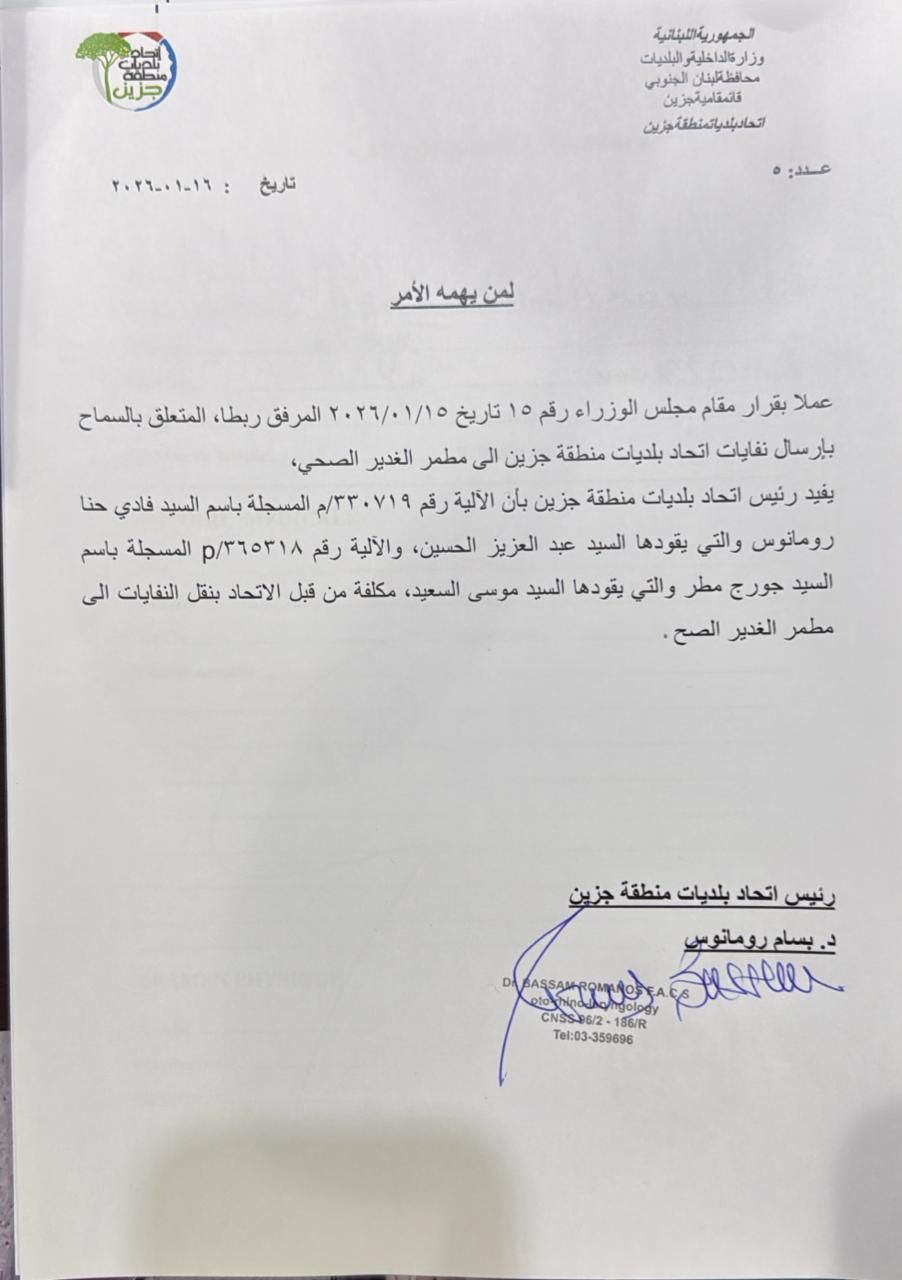 وبناءً على ذلك، وبموجب تعليمات رومانس، بوشِر اليوم الجمعة فعليًا العمل على جمع ونقل النفايات من مختلف بلدات قضاء جزّين.