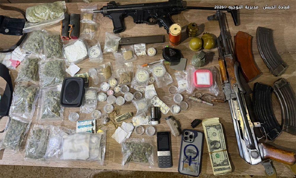 دهمت وحدة من الجيش منازل مطلوبين في منطقة الدورة – الهرمل، وأوقفت المواطن (ح.ح.) لإطلاقه النار باتجاه أحد الأشخاص وإصابته، وترويجه المخدرات، وضبطت في حوزته كمية من حشيشة الكيف وحبوب الكبتاغون وأسلحة وذخائر حربية، بالإضافة إلى أعتدة عسكرية.