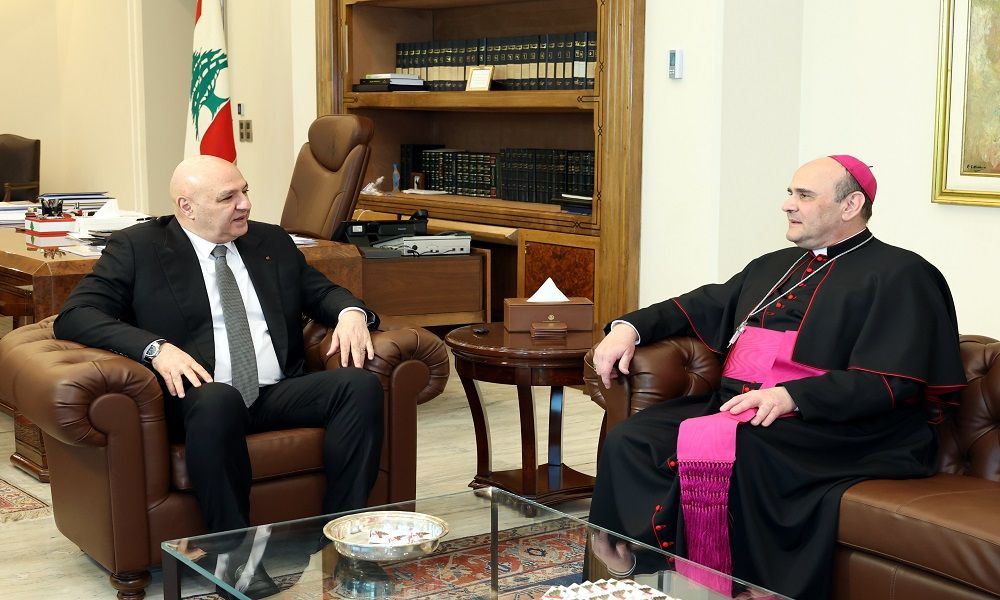 عرض رئيس الجمهورية العماد جوزاف عون للتطورات مع السفير البابوي المونسنيور باولو بورجيا، الذي أطلعه على نتائج زيارته إلى عدد من البلدات والقرى الجنوبية، لا سيما تلك التي صمد أهلها فيها رغم تدهور الوضع الأمني.