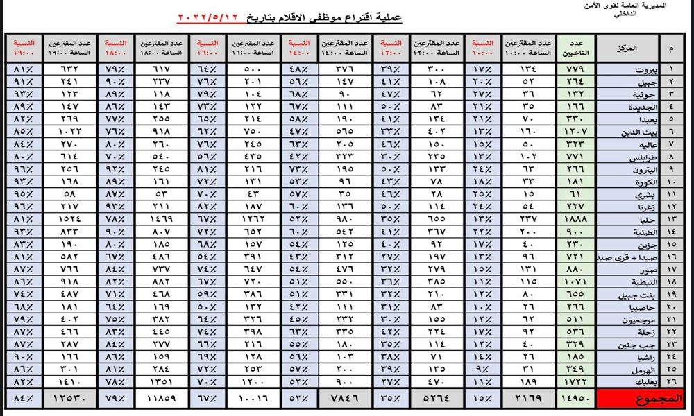 كشف مكتب وزير الداخلية والبلديات بسام مولوي أن التأخر في إصدار النسب النهائية رسمياً يعود الى استمرار عملية الاقتراع في عدد من الاقلام في عكار وقلمين في جبل لبنان، لمن كانوا في باحة تلك المراكز عند الساعة السابعة من مساء اليوم.